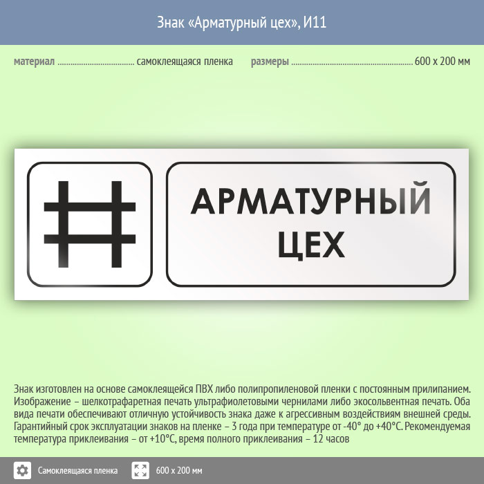 Знак «Арматурный цех», И11 (пленка, 600х200 мм) в Великом Новгороде купить
