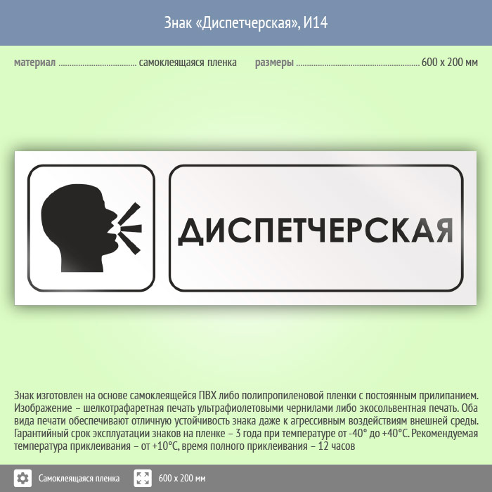 Знак «Диспетчерская», И14 (пленка, 600х200 мм) в Великом Новгороде купить