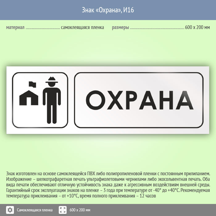 Знак «Охрана», И16 (пленка, 600х200 мм) в Великом Новгороде купить