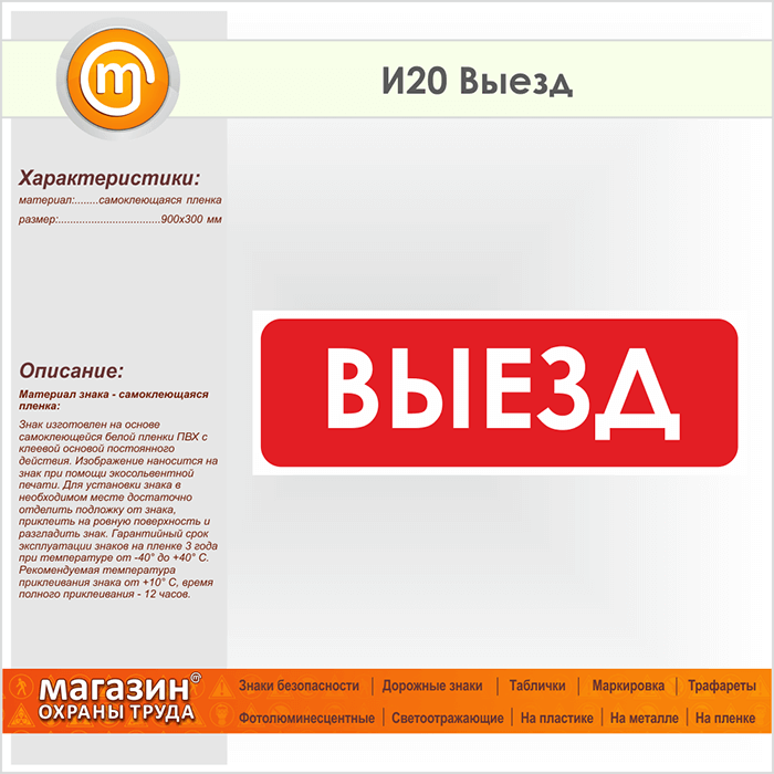 Знак «Выезд», И20 (пленка, 900х300 мм) в Великом Новгороде купить