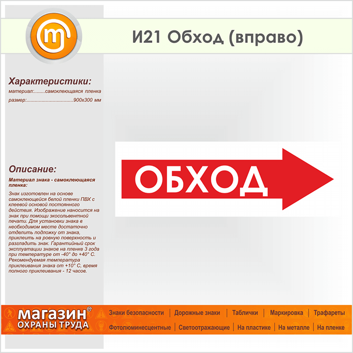 Знак «Обход (вправо)», И21 (пленка, 900х300 мм) в Великом Новгороде купить