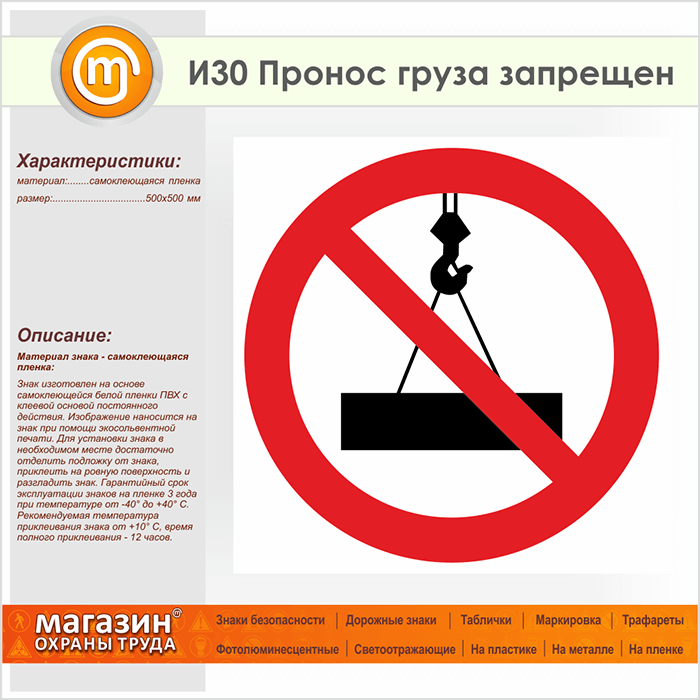 Знак «Пронос груза запрещен», И30 (пленка, 500х500 мм) в Великом Новгороде купить