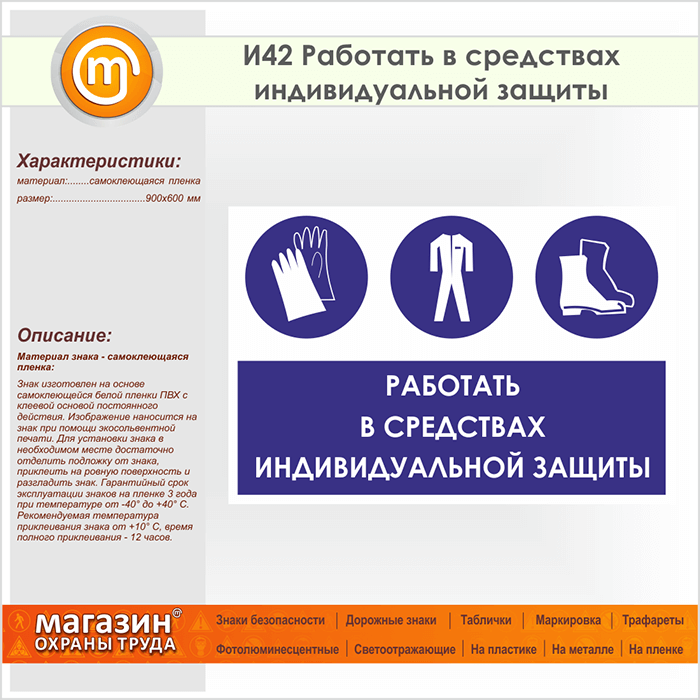 Знак «Работать в средствах индивидуальной защиты», И42 (пленка, 900х600 мм) в Великом Новгороде купить