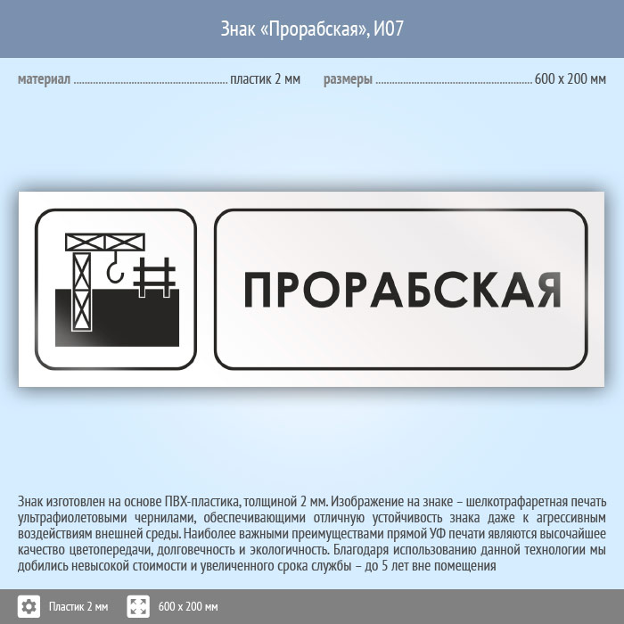 Знак «Прорабская», И07 (пластик, 600х200 мм) в Великом Новгороде купить