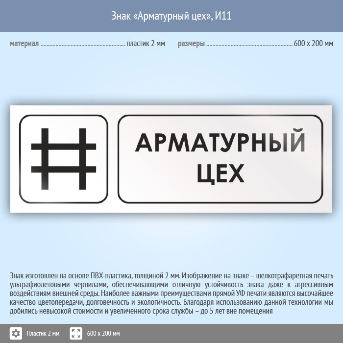 Знак «Арматурный цех», И11 (пластик, 600х200 мм) в Великом Новгороде купить