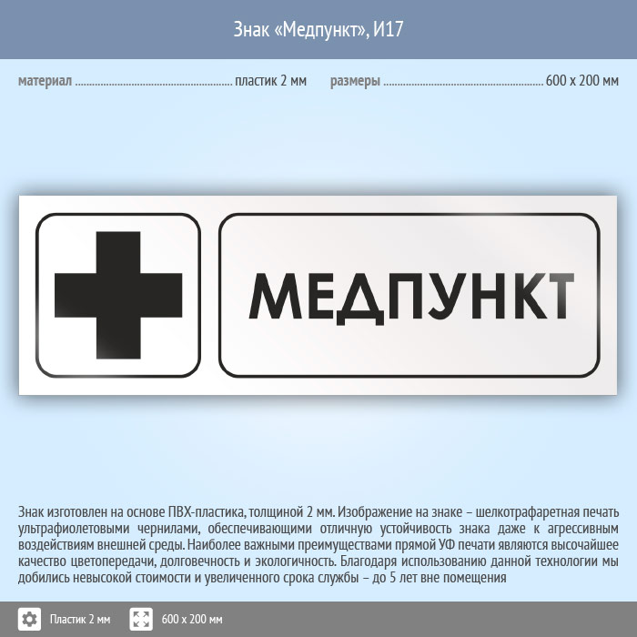 Знак «Медпункт», И17 (пластик, 600х200 мм) в Великом Новгороде купить