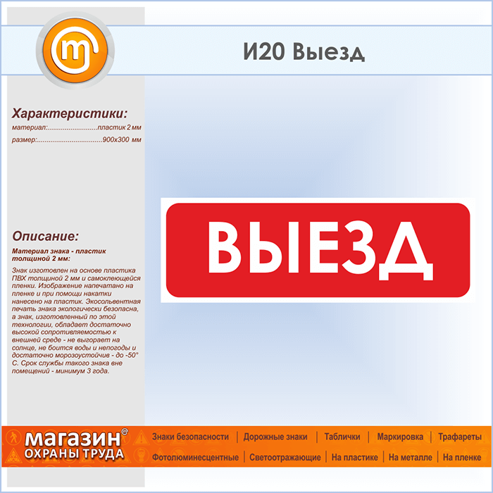 Знак «Выезд», И20 (пластик, 900х300 мм) в Великом Новгороде купить