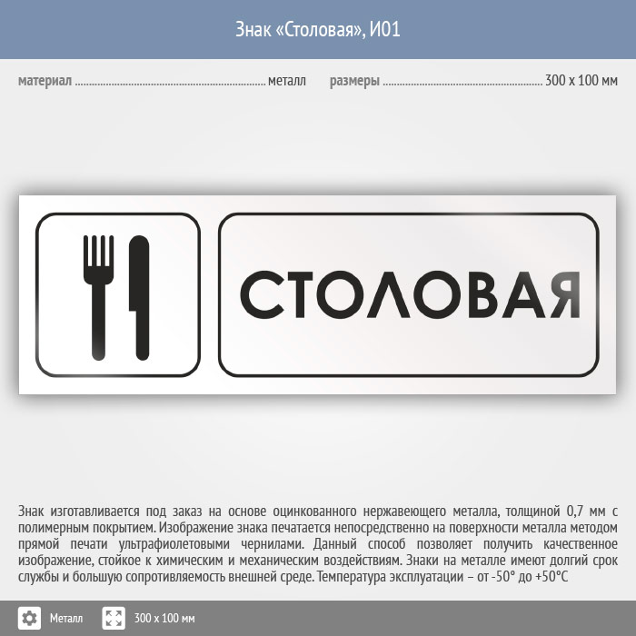 Знак «Столовая», И01 (металл, 300х100 мм) в Великом Новгороде купить