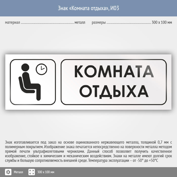 Знак «Комната отдыха», И03 (металл, 300х100 мм) в Великом Новгороде купить