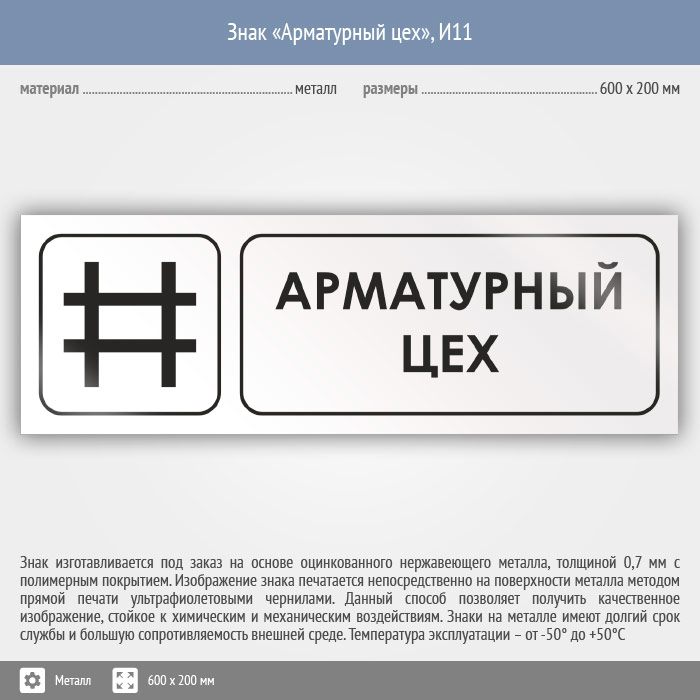 Знак «Арматурный цех», И11 (металл, 600х200 мм) в Великом Новгороде купить