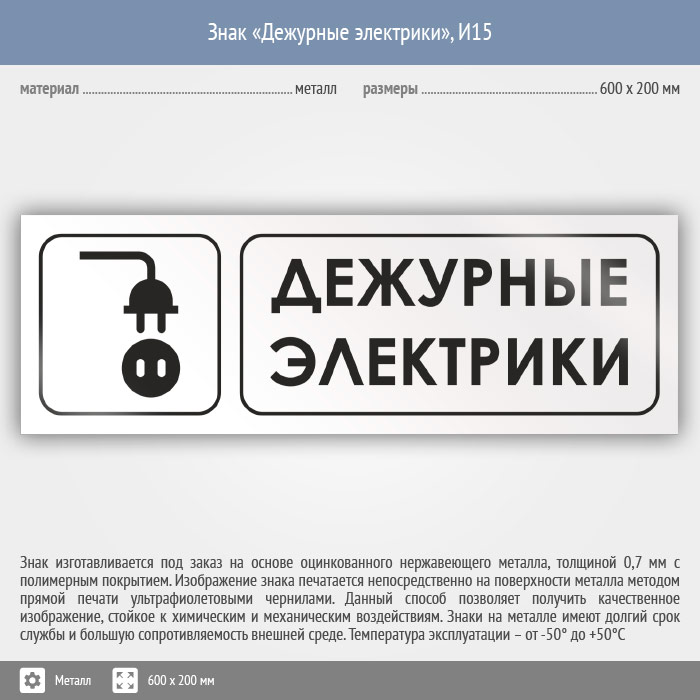 Знак «Дежурные электрики», И15 (металл, 600х200 мм) в Великом Новгороде купить