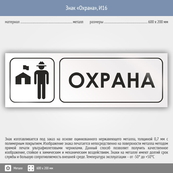 Знак «Охрана», И16 (металл, 600х200 мм) в Великом Новгороде купить