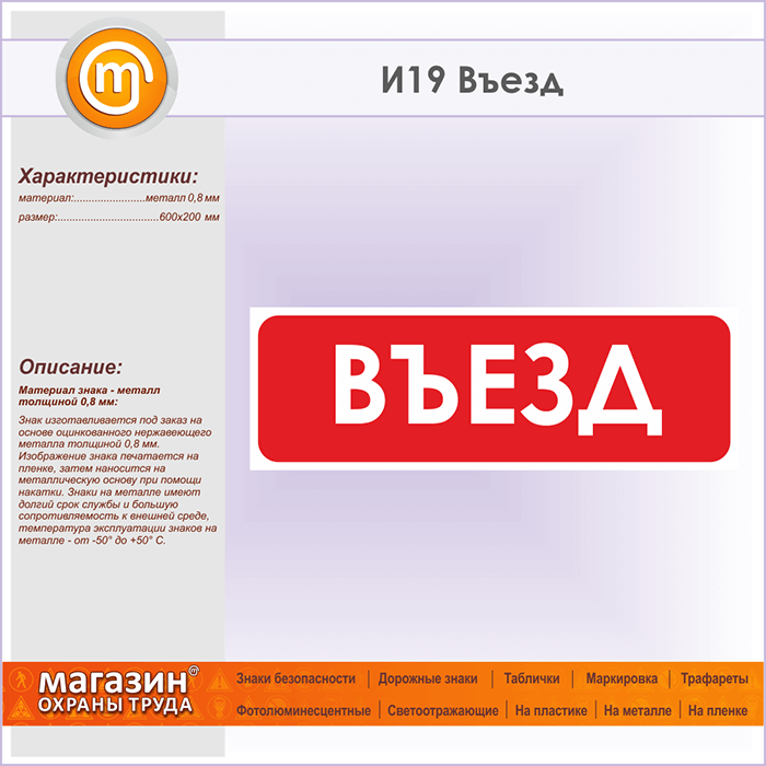 Знак «Въезд», И19 (металл, 600х200 мм) в Великом Новгороде купить