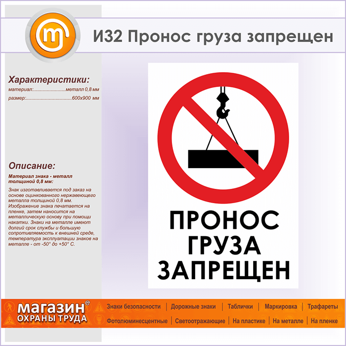 Знак «Пронос груза запрещен», И32 (металл, 600х900 мм) в Великом Новгороде купить