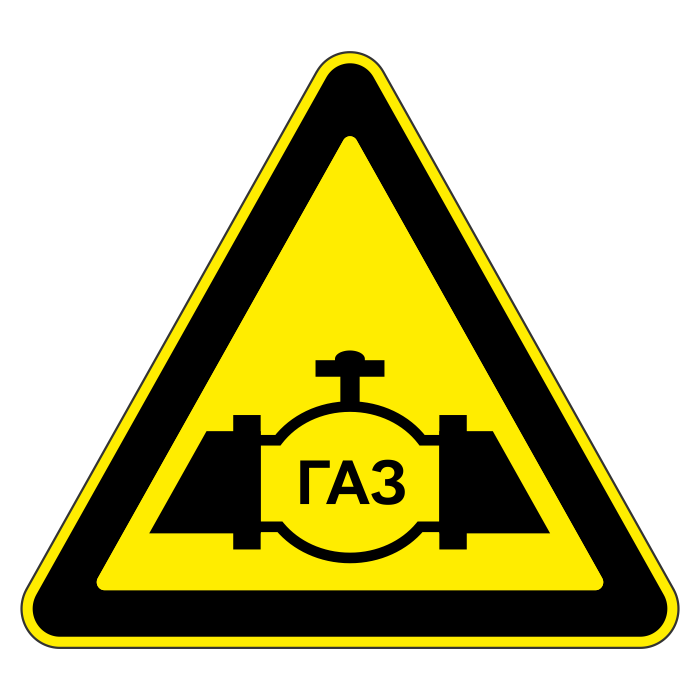 Знак «Осторожно газопровод», МГ-2 (металл 0,8 мм, II типоразмер: сторона 900 мм, С/О пленка: тип Б высокоинтенсивная) в Великом Новгороде купить