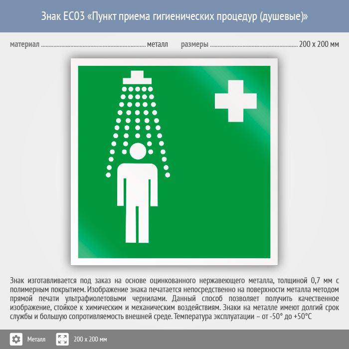 Знак EC03 «Пункт приема гигиенических процедур (душевые)» (металл, 200х200 мм) в Великом Новгороде купить