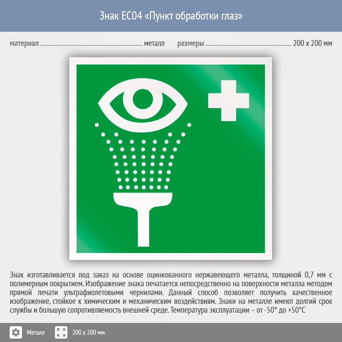 Знак EC04 «Пункт обработки глаз» (металл, 200х200 мм) в Великом Новгороде купить