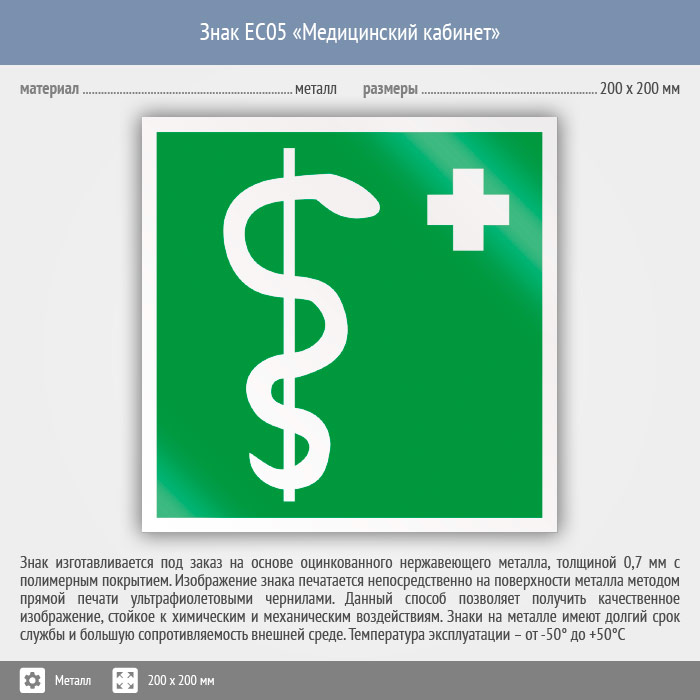 Знак EC05 «Медицинский кабинет» (металл, 200х200 мм) в Великом Новгороде купить