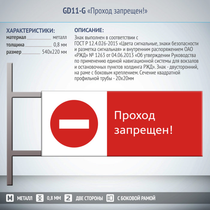 Знак «Проход запрещен!», GD11-G (двусторонний горизонтальный, 540х220 мм, металл, на раме с боковым креплением) в Великом Новгороде купить