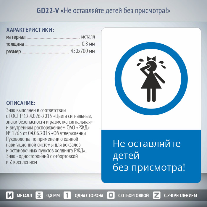 Знак «Не оставляйте детей без присмотра!», GD22-V (односторонний вертикальный, 450х700 мм, металл, с отбортовкой и Z-креплением) в Великом Новгороде купить