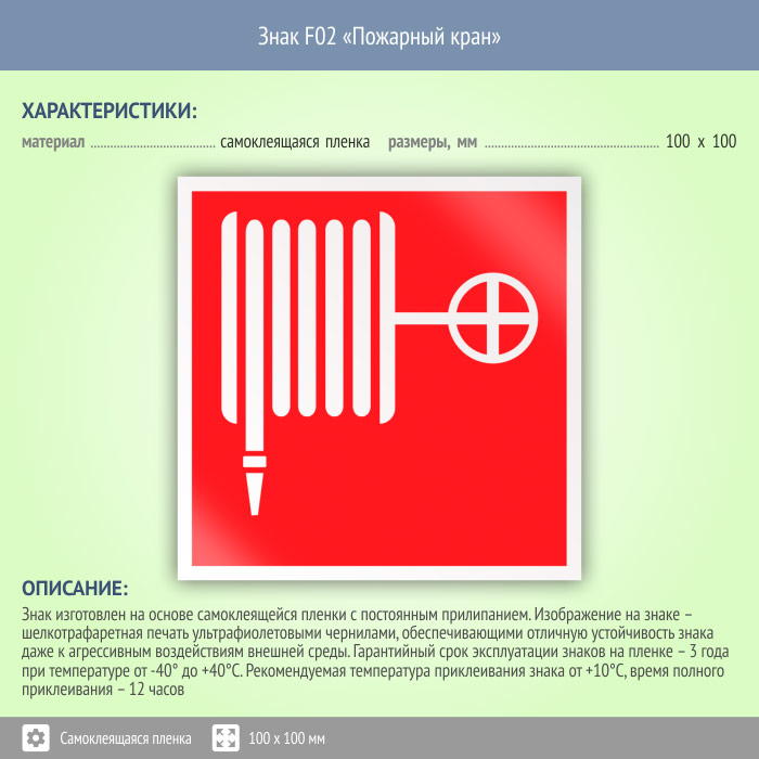 Знак F02 «Пожарный кран» (пленка, 100х100 мм) в Великом Новгороде купить