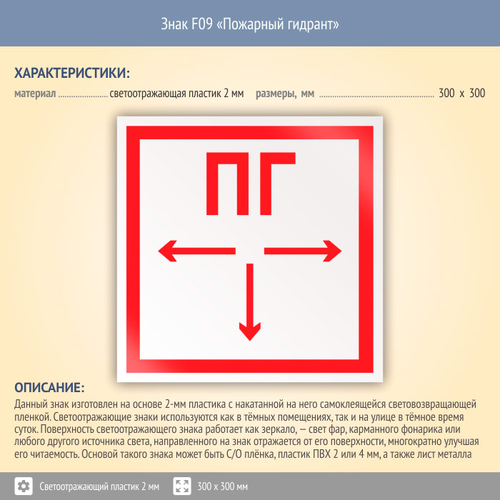 Знак F09 «Пожарный гидрант» (светоотражающий пластик, 300х300 мм) в Великом Новгороде купить