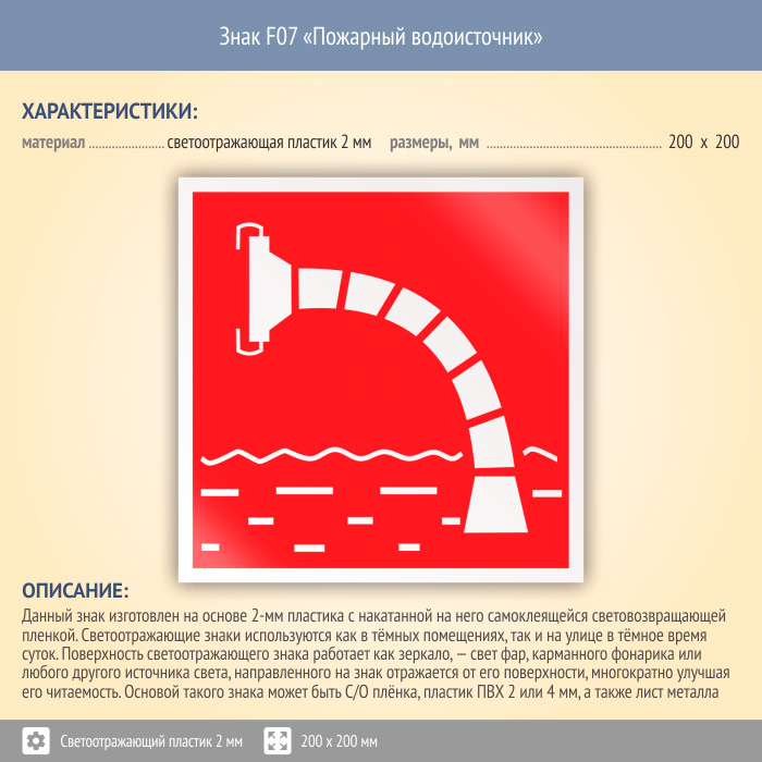 Знак F07 «Пожарный водоисточник» (светоотражающий пластик, 200х200 мм) в Великом Новгороде купить