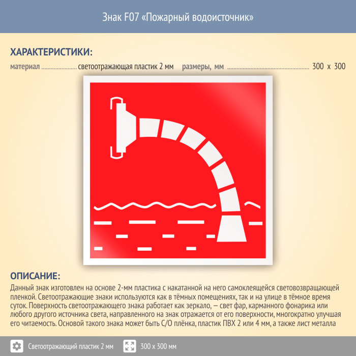Знак F07 «Пожарный водоисточник» (светоотражающий пластик, 300х300 мм) в Великом Новгороде купить