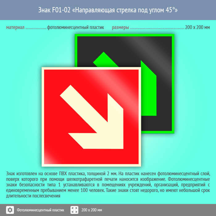 Знак F01-02 «Направляющая стрелка под углом 45°» (фотолюминесцентный пластик, 200х200 мм) в Великом Новгороде купить