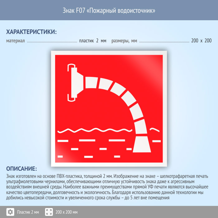 Знак F07 «Пожарный водоисточник» (пластик, 200х200 мм) в Великом Новгороде купить