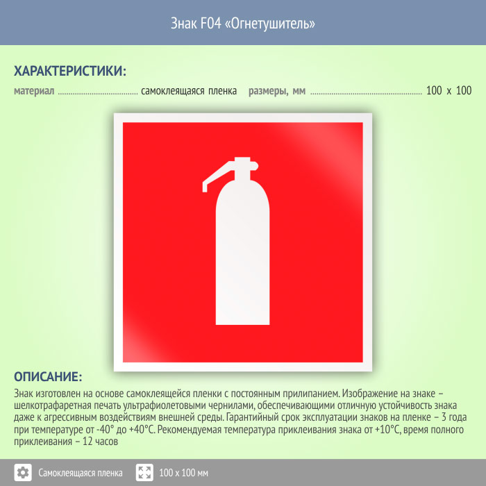 Знак F04 «Огнетушитель» (пленка, 100х100 мм) в Великом Новгороде купить
