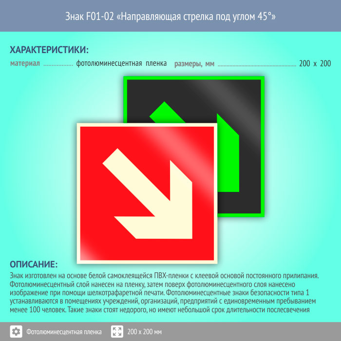 Знак F01-02 «Направляющая стрелка под углом 45°» (фотолюминесцентная пленка, 200х200 мм) в Великом Новгороде купить