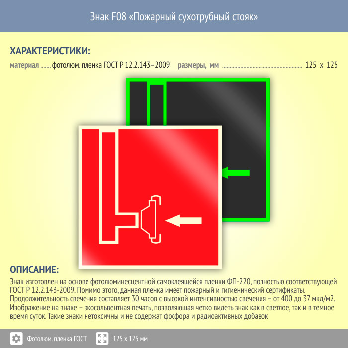 Знак F08 «Пожарный сухотрубный стояк» (фотолюминесцентная пленка ГОСТ 34428-2018, 125х125 мм) в Великом Новгороде купить