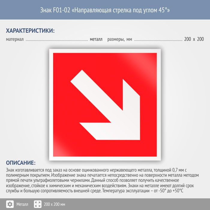 Знак F01-02 «Направляющая стрелка под углом 45°» (металл, 200х200 мм) в Великом Новгороде купить