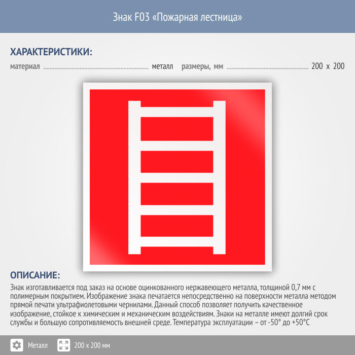 Знак F03 «Пожарная лестница» (металл, 200х200 мм) в Великом Новгороде купить