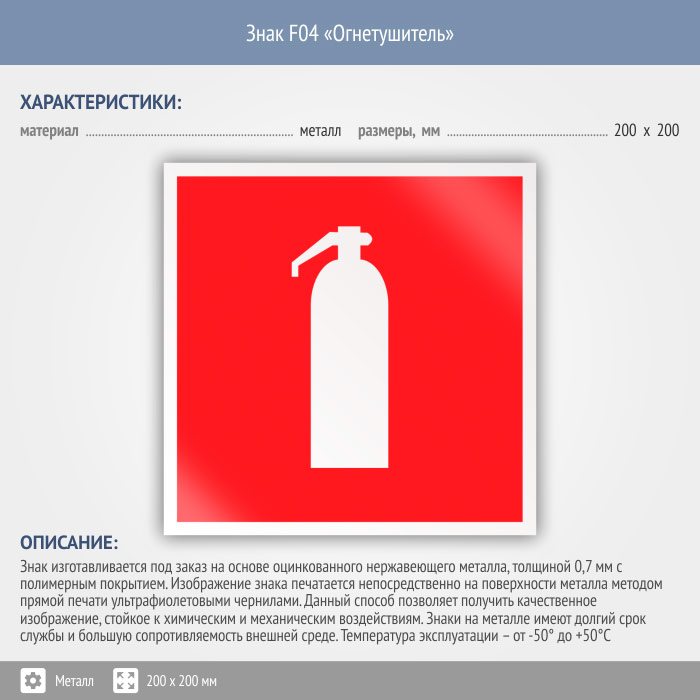 Знак F04 «Огнетушитель» (металл, 200х200 мм) в Великом Новгороде купить