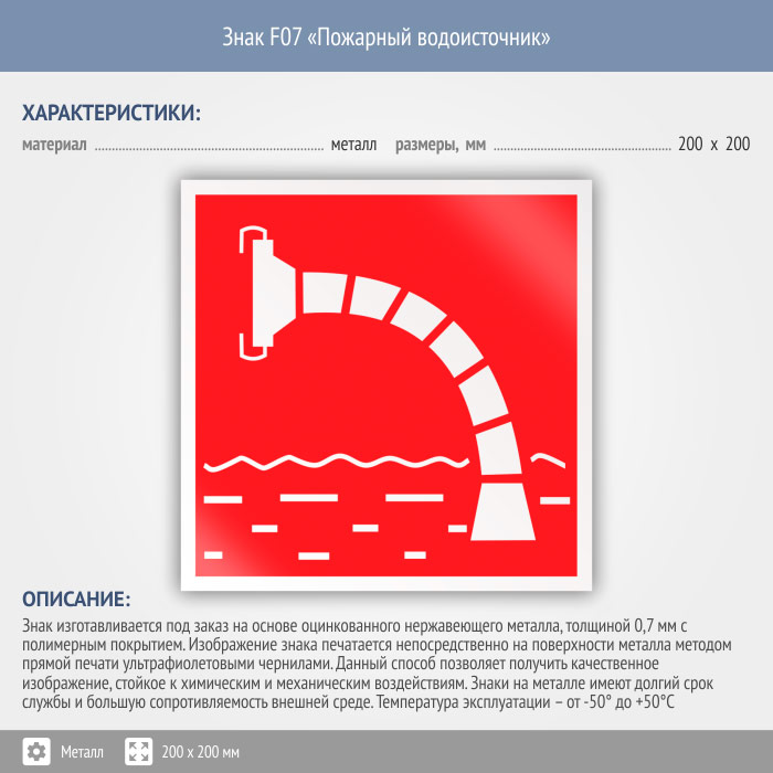 Знак F07 «Пожарный водоисточник» (металл, 200х200 мм) в Великом Новгороде купить