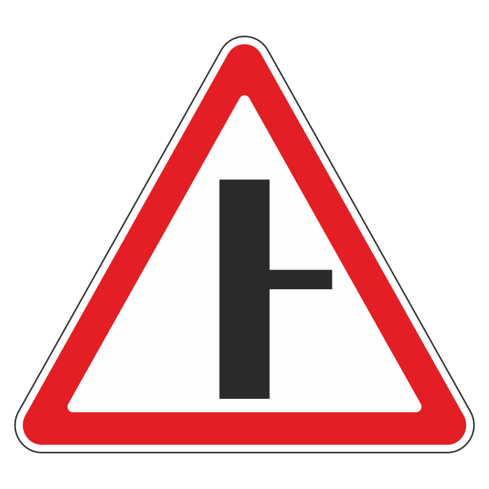 Дорожный знак 2.3.2 «Примыкание второстепенной дороги справа» (металл 0,8 мм, III типоразмер: сторона 1200 мм, С/О пленка: тип Б высокоинтенсивная) в Великом Новгороде купить