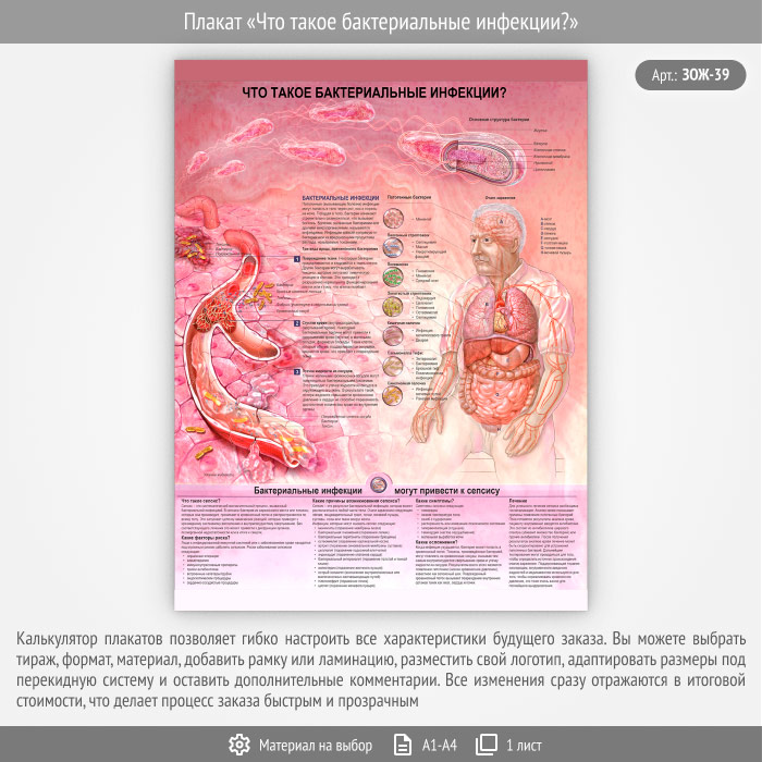 Плакат «Что такое бактериальные инфекции?» (ЗОЖ-39, 1 лист) в Великом Новгороде купить